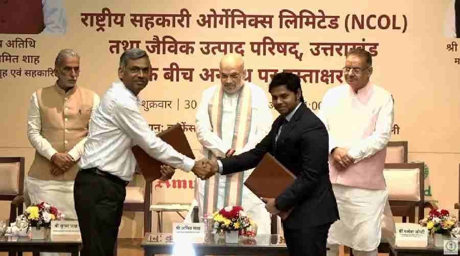 नई दिल्ली: प्रदेश के कृषि मंत्री गणेश जोशी ने नई दिल्ली में उत्तराखण्ड जैविक उत्पाद परिषद द्वारा आयोजित राष्ट्रीय सहकारी ऑर्गेनिक लिमिटेड एवं उत्तराखंड जैविक उत्पाद परिषद के बीच अनुबंध पर हस्ताक्षर कार्यक्रम में प्रतिभाग किया गया। कार्यक्रम में बतौर मुख्य अतिथि केंद्रीय गृह एवं सहकारिता मंत्री अमित शाह की उपस्थिति में सहकारिता मंत्रालय के अधीन स्थापित नेशनल कोआपरेटिव आर्गेनिक लिमिटेड (एनसीओएल) और उत्तराखण्ड जैविक उत्पाद परिषद ( उत्तराखंड सरकार) के साथ एमओयू साइन किया गया। राष्ट्रीय सहकारी ऑर्गेनिक लिमिटेड एवं उत्तराखंड जैविक उत्पाद परिषद के बीच हुआ अनुबंध में -जैविक खेती करने वाले किसानों को एक मंच मिलेगा, जैविक उत्पादों को बाजार उपलब्ध होगा, बाजार पहुंच का विस्तार होगा, जैविक उत्पादन और विपणन प्रयासों में सुधार होगा औरकिसानों की आय में वृद्धि होगी। इसमें राष्ट्रीय सहकारी ऑर्गेनिक लिमिटेड जैविक उत्पाद परिषद उत्तराखंड का पूर्ण सहयोग करेगा।