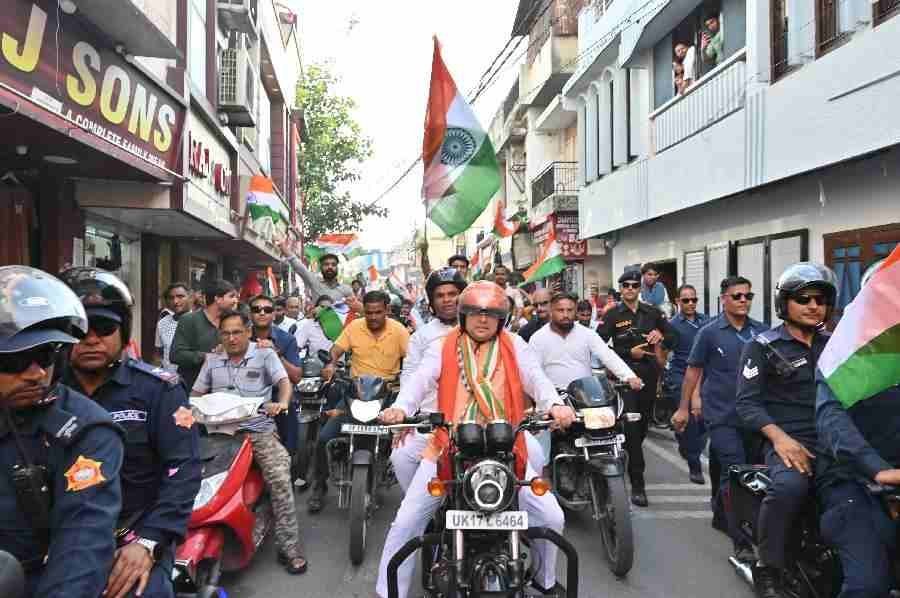 देहरादून: मुख्यमंत्री पुष्कर सिंह धामी मंगलवार को रुड़की में आयोजित तिरंगा बाइक रैली में शामिल हुए। मुख्यमंत्री ने स्वयं बाइक चलाकर रैली की शुरुआत की। सैकड़ो की संख्या में बाईकों पर लोग इस तिरंगा यात्रा में शामिल हुए।